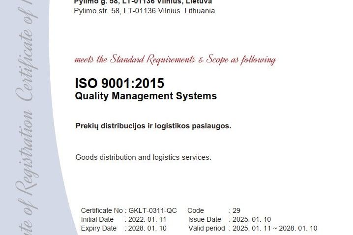 Atnaujintas ISO 9001:2015 kokybės vadybos sertifikatas